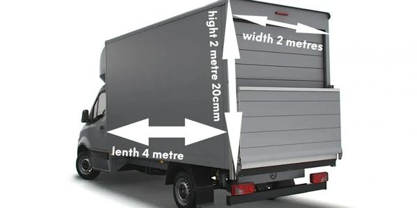 These are the sizes for the inside measurements of the Luton box van. The Luton is equipped with a electric tail lift.